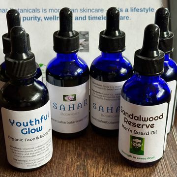 Handmade organic skincare. 4oz bottles of Youthful glow (lasts 4-6mths for just face) & (2-3mths for full body) ~ face & body oil & Sandalwood Reserve ~ Men's beard oil