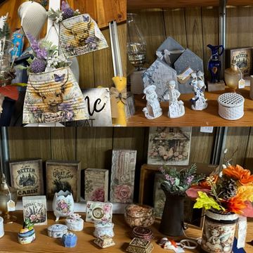 Home decor, Custom serving tray, vintage trinkets, tin cans, & primitive wood
