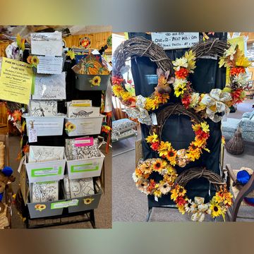 Wreaths, painting kits (includes: canvas, paint, brushes, instruction picture & "surprise gift" & art by vendor. Custom design paint parties