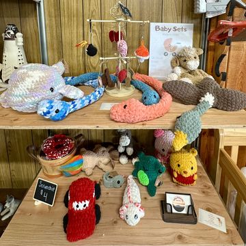 Handmade crochet items, scrunchies, towels, keychains, doorstops, etc..
